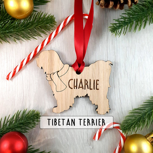 Personalised Tibetan Terrier Dog Bauble - Sustainable Oak Wooden Bauble